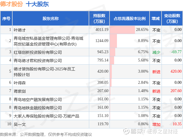 根据德才股份2025年三季报公布的十大股东详情如下: