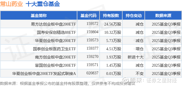 重仓常山药业的公募基金请见下表: