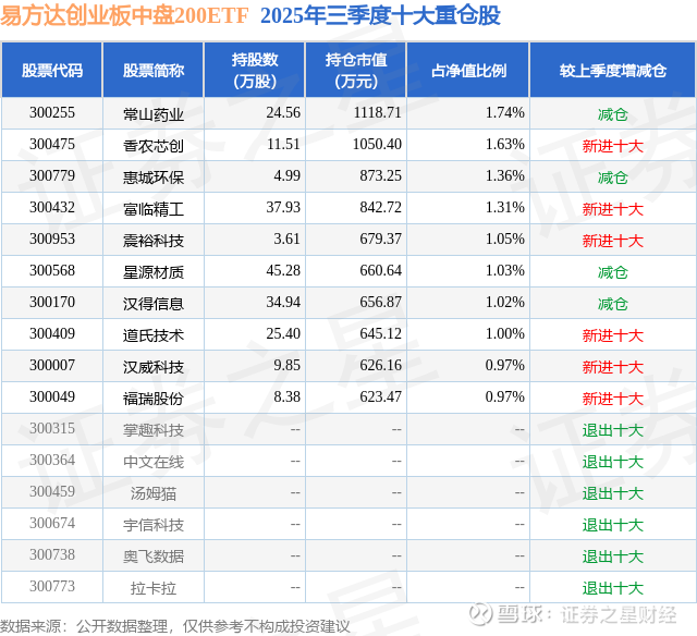 根据2025基金Q3季报公募基金重仓股数据,重仓该股的公募基金共7家,其中持有数量最多的公募基金为易方达基金的易方达创业板中盘200ETF。易方达创业板中盘200ETF目前规模为6.44亿元,最新净值1.4104(11月28日),较上一交易日上涨1.17%,近一年上涨19.97%。该公募基金现任基金经理为李树建。李树建在任的基金产品包括:易方达上证科创板成长ETF联接发起式A,管理时间为2024年1月4日至今,期间收益率为98.13%;易方达信创ETF联接A,管理时间为2024年1月5日至今,期间收益率为76.78%;易方达机器人ETF联接A,管理时间为2024年5月21日至今,期间收益率为39.17%。