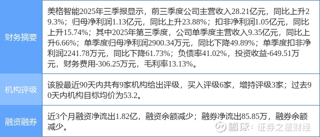 2025年10月28日,国金证券研究员张真桢发布了对美格智能的研报《国外市场放量带动毛利率环比修复,端侧AI成长空间广阔》,该研报对美格智能给出“买入”评级。研报中预计公司2025-2027年营业收入分别为39.58/49.39/59.26亿元;归母净利润分别为2.06/2.87/3.59亿元,对应PE为60/43/34倍,维持“买入”评级。证券之星数据中心根据近三年发布的研报数据计算,该研报作者对此股的盈利预测准确度为71.4%。