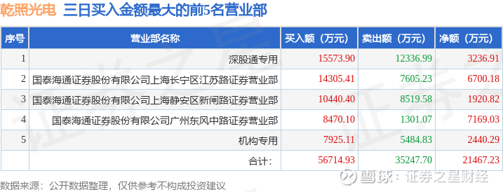 证券小知识:龙虎榜是交易所披露的竞价交易公开信息,现身龙虎榜的个股都是当日最为活跃的个股,是投资者日常重点关注的数据。交易所公布当日买入金额和卖出金额前五名的席位,其中一些席位代表特殊意义,如机构专用席位是指基金专用席位、券商自营专用席位、社保专用席位、券商理财专用席位、保险机构专用席位、保险机构租用席位、QFII专用席位等机构投资者买卖证券的专用通道和席位。深股通专用、沪股通专用为北向资金的交易席位。从龙虎榜数据可以发现和研究机构、游资和散户的资金动向。一些营业部席位经常上榜,市场知名度较高,投资者整理代表散户、游资、量化等不同资金的营业部席位。