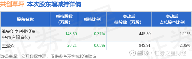 证券之星消息,12月1日共创草坪发布公告《共创草坪:股东减持股份结果公告》,其股东淮安创享创业投资中心(有限合伙)、王强众于2025年9月1日至2025年11月30日间合计减持168.71万股,占公司目前总股本的0.4191%,变动期间该股股价上涨11.81%,截止11月28日收盘报36.25元。
