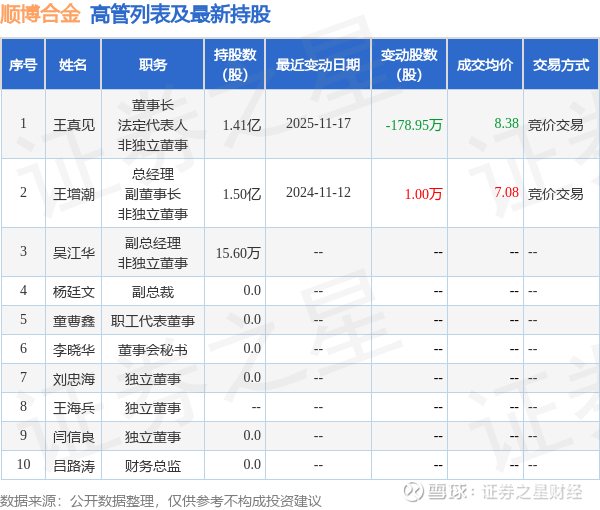 顺博合金的高管列表及最新持股情况如下: