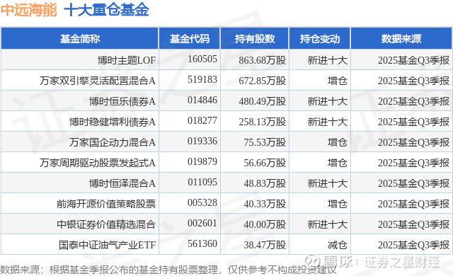 重仓中远海能的前十大公募基金请见下表: