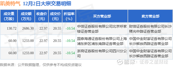 证券之星消息,12月2日凯美特气发生大宗交易,交易数据如下:
