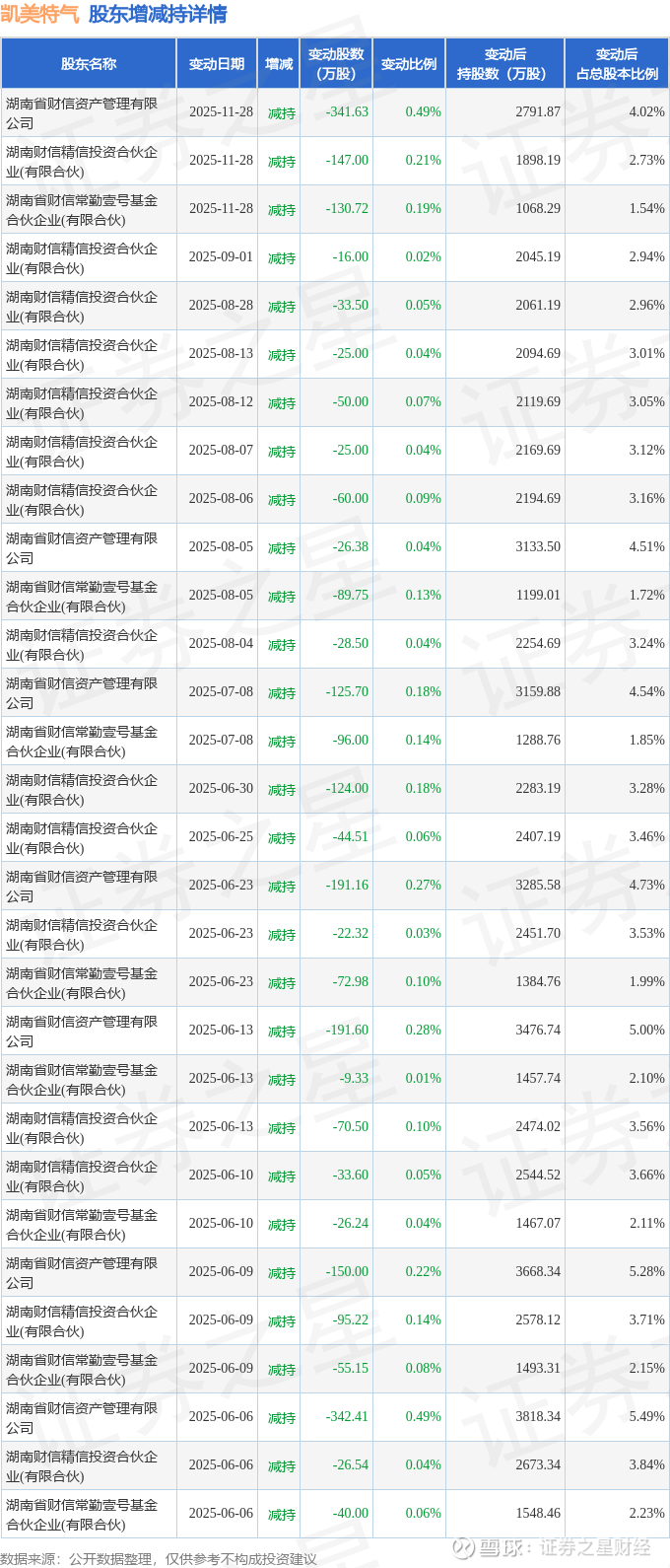 该股近半年内有股东持股变动,合计净减持2690.74万股,股东增减持明细如下表: