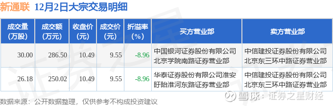 证券之星消息,12月2日新通联发生大宗交易,交易数据如下: