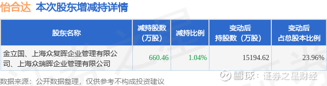 证券之星消息,12月2日怡合达发布公告《怡合达:关于控股股东、实际控制人及其一致行动人权益变动触及1%整数倍的公告》,其股东金立国、上海众复晖企业管理有限公司、上海众瑞晖企业管理有限公司于2025年1月22日至2025年12月1日间合计减持660.46万股,占公司目前总股本的1.0414%,变动期间该股股价上涨0.15%,截止12月1日收盘报25.95元。