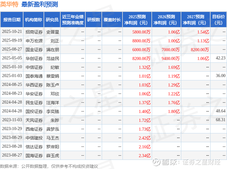 以下是详细的盈利预测信息: