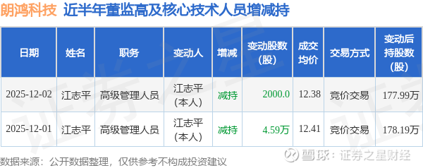 朗鸿科技近半年内的董监高及核心技术人员增减持详情如下: