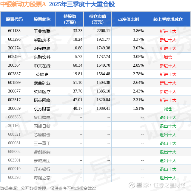 根据2025基金Q3季报公募基金重仓股数据,重仓该股的公募基金共4家,其中持有数量最多的公募基金为中银基金的中银新动力股票A。中银新动力股票A目前规模为5.7亿元,最新净值0.873(12月2日),较上一交易日下跌0.91%,近一年上涨11.49%。该公募基金现任基金经理为王伟然。王伟然在任的基金产品包括:中银中小盘成长混合,管理时间为2020年11月2日至今,期间收益率为2.03%;中银优秀企业混合,管理时间为2021年6月22日至今,期间收益率为-16.59%;