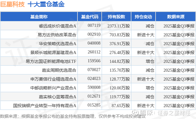 重仓巨星科技的前十大公募基金请见下表: