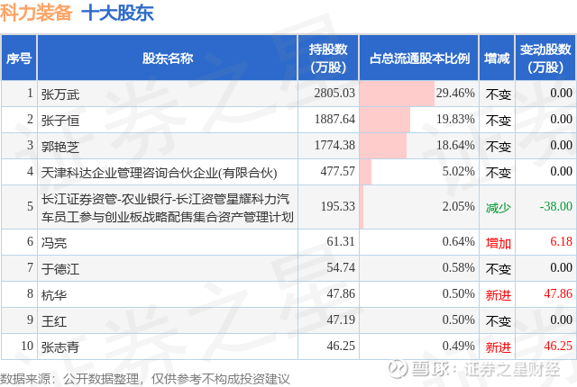 根据科力装备2025年三季报公布的十大股东详情如下:
