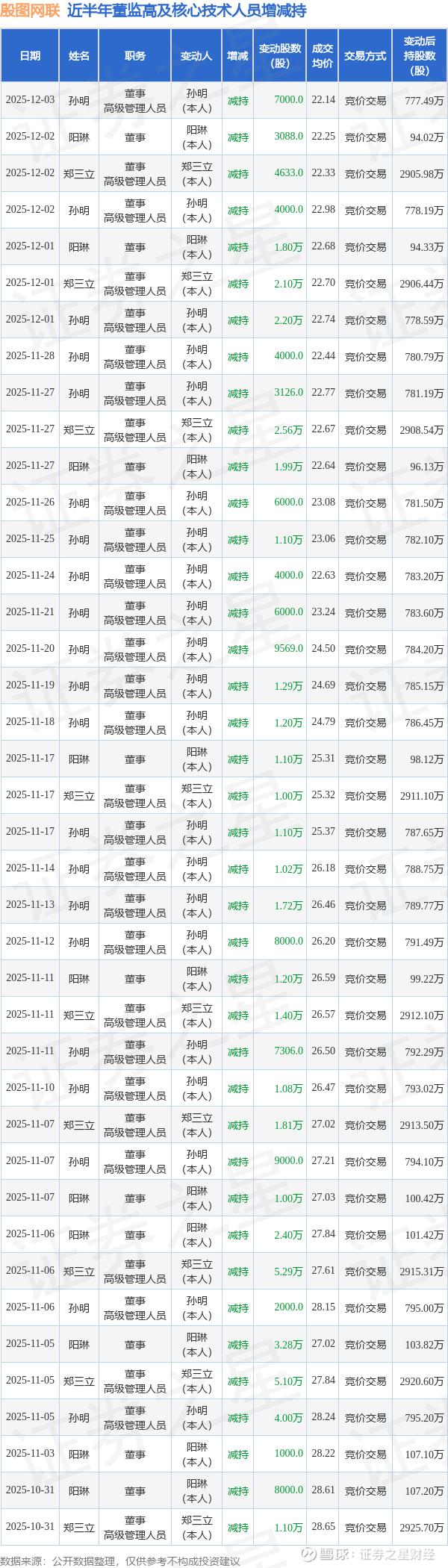 殷图网联近半年内的董监高及核心技术人员增减持详情如下: