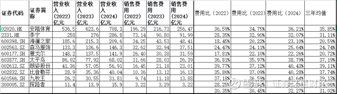 以运动服饰板块为例,安踏体育近三年的销售费用分别为196.29亿元、216.73亿元、256.47亿元,李宁同期这一指标为73.14亿元、90.8亿元、91.99亿元,