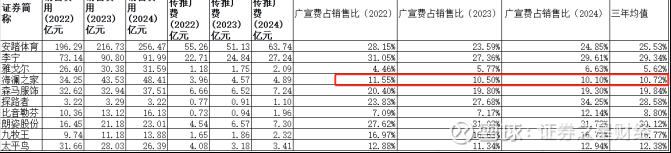 运动品牌普遍采用高强度的广告投放策略。安踏体育近三年的广告宣传推广费从55.26亿元降至51.13亿元又增至63.74亿元,李宁近三年广告宣传推广费则从22.71亿元增至27.24亿元。占比来看,安踏体育、李宁广告宣传推广费占营收比例长期维持在9%左右,其中安踏均值为9.17%,李宁为9.1%,与其依托顶级赛事、明星代言及大型品牌活动塑造专业形象的商业模式相符。朗姿股份的广告投入占比也持续高于10%,2024年达到12.82%,体现了其通过高曝光建立高端认知的战略导向。这种模式虽有助于快速建立品牌认知和偏好,但也对企业的利润转化能力提出更高要求。