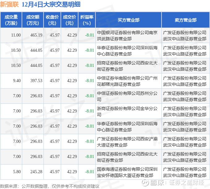 证券之星消息,12月4日新强联发生大宗交易,交易数据如下: