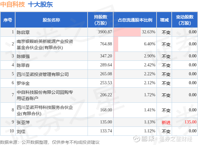 根据中自科技2025年三季报公布的十大股东详情如下: