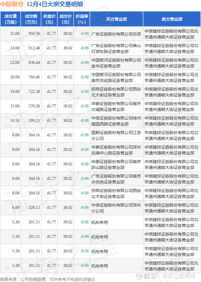 证券之星消息,12月4日中际联合发生大宗交易,交易数据如下: