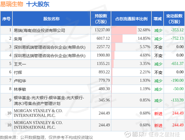 根据易瑞生物2025年三季报公布的十大股东详情如下: