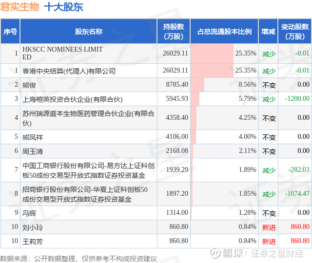 根据君实生物2025年三季报公布的十大股东详情如下: