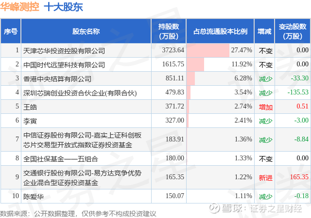 根据华峰测控2025年三季报公布的十大股东详情如下: