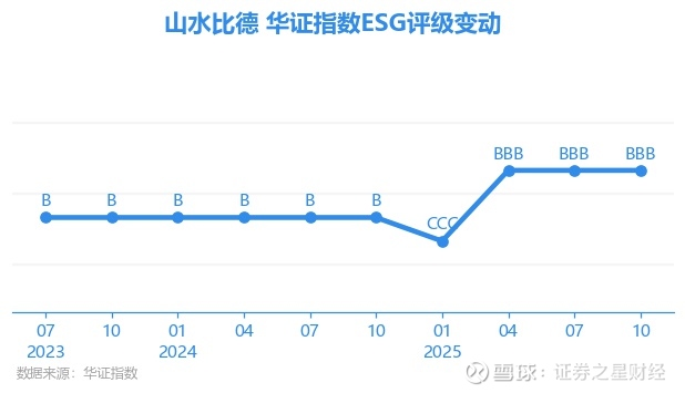 日前,华证指数公布了新一期(2025年10月31日)的ESG评级结果,山水比德(300844.SZ)获得BBB评级(华证指数评级为C起至AAA九档,C为最低档,AAA为其最高一级评级/AA为其第二档),上一期(2025年7月31日)ESG评级为BBB。本期ESG评级在161家商业服务与商业用品行业A股上市公司中排名第18(上一期排名第16)。