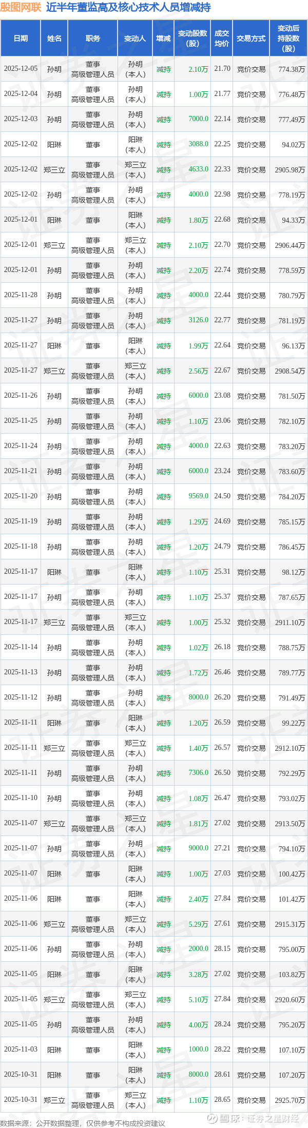 殷图网联近半年内的董监高及核心技术人员增减持详情如下:
