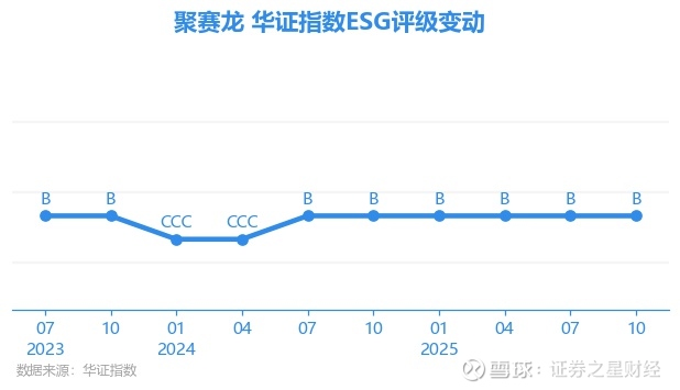 日前,华证指数公布了新一期(2025年10月31日)的ESG评级结果,聚赛龙(301131.SZ)获得B评级(华证指数评级为C起至AAA九档,C为最低档,AAA为其最高一级评级/AA为其第二档),上一期(2025年7月31日)ESG评级为B。本期ESG评级在494家化学制品行业A股上市公司中排名第218(上一期排名第221)。