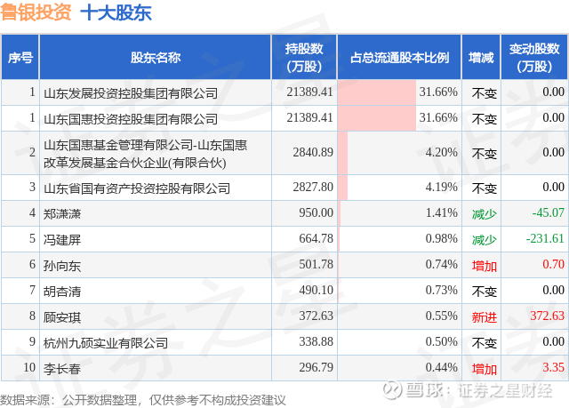 根据鲁银投资2025年三季报公布的十大股东详情如下: