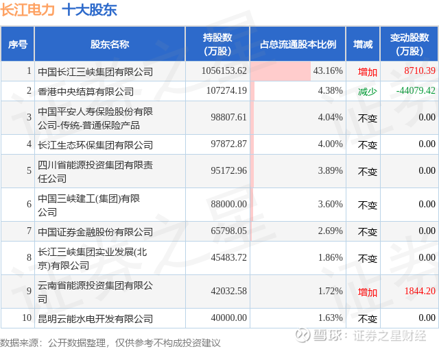 根据长江电力2025年三季报公布的十大股东详情如下: