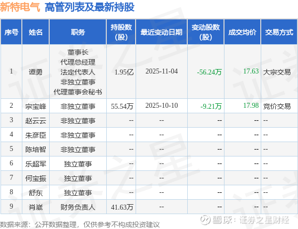 新特电气近半年内的董监高及核心技术人员增减持详情如下: