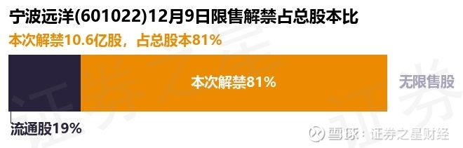 证券之星消息,根据市场公开信息整理,宁波远洋(601022)于12月9日将有10.6亿股限售股份解禁,为公司首发原股东限售股份,占公司总股本81.0%。(本次数据根据历史公告整理得出,实际情况以上市公司最新公告为准)本次解禁后,公司已无限售股份。具体如下图所示:
