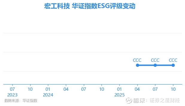 日前,华证指数公布了新一期(2025年10月31日)的ESG评级结果,宏工科技(301662.SZ)获得CCC评级(华证指数评级为C起至AAA九档,C为最低档,AAA为其最高一级评级/AA为其第二档),上一期(2025年7月31日)ESG评级为CCC。本期ESG评级在492家机械制造行业A股上市公司中排名第382(上一期排名第339)。