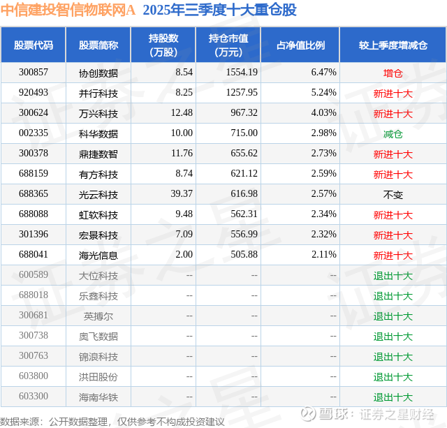根据2025基金Q3季报公募基金重仓股数据,重仓该股的公募基金共5家,其中持有数量最多的公募基金为中信建投基金的中信建投智信物联网A。中信建投智信物联网A目前规模为1.41亿元,最新净值1.1732(12月8日),较上一交易日上涨2.59%,近一年下跌16.22%。该公募基金现任基金经理为周紫光。周紫光在任的基金产品包括:中信建投智享生活混合A,管理时间为2020年11月4日至今,期间收益率为-39.47%;中信建投低碳成长混合A,管理时间为2021年12月13日至今,期间收益率为-46.87%。