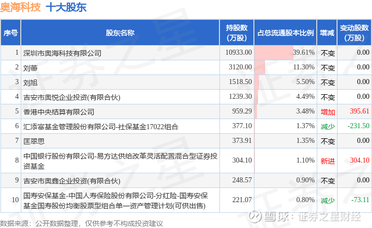 根据奥海科技2025年三季报公布的十大股东详情如下: