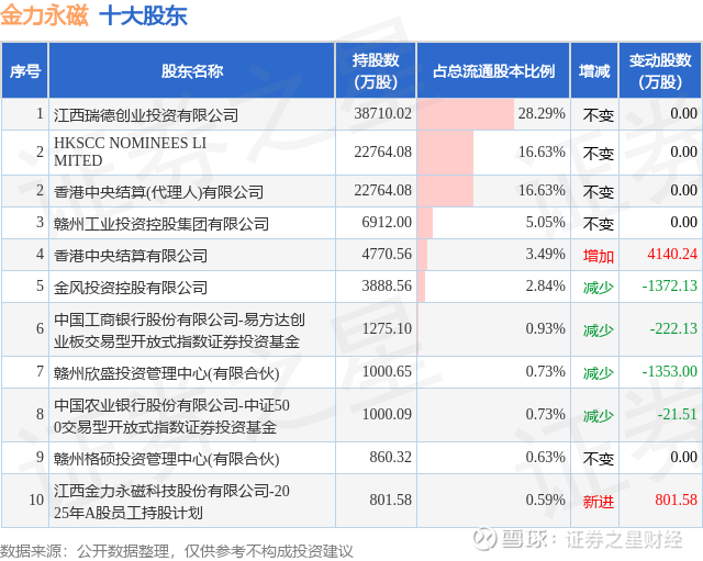 根据金力永磁2025年三季报公布的十大股东详情如下: