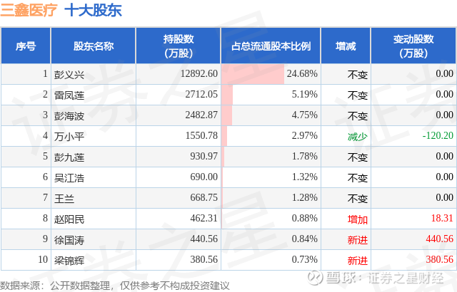 根据三鑫医疗2025年三季报公布的十大股东详情如下: