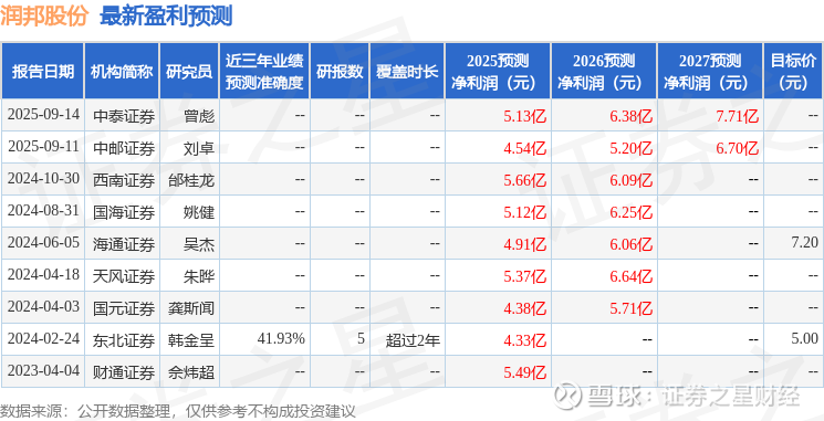 以下是详细的盈利预测信息: