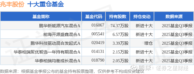 重仓兆丰股份的公募基金请见下表: