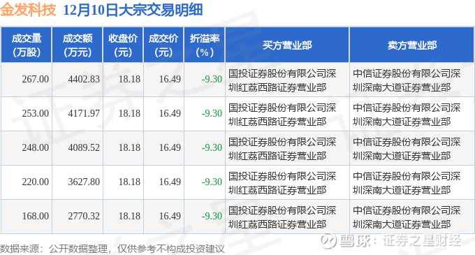 证券之星消息,12月10日金发科技发生大宗交易,交易数据如下: