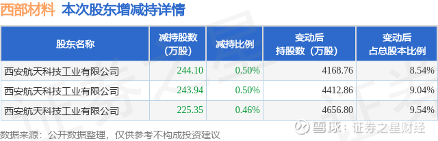 证券之星消息,12月10日西部材料发布公告《西部材料:关于持股5%以上股东权益变动触及1%整数倍的公告》,其股东西安航天科技工业有限公司于2025年3月5日至2025年12月9日间合计减持713.4万股,占公司目前总股本的1.4613%,变动期间该股股价上涨20.86%,截止12月9日收盘报23.87元。