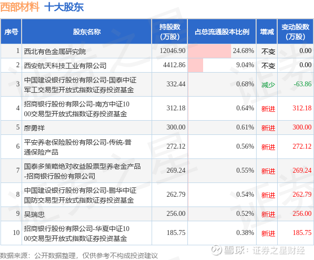 根据西部材料2025年三季报公布的十大股东详情如下: