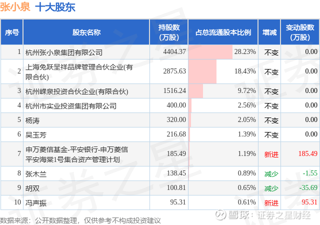 根据张小泉2025年三季报公布的十大股东详情如下: