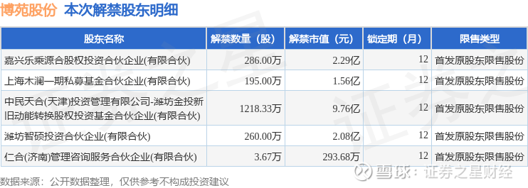 证券之星消息,根据市场公开信息整理,博苑股份(301617)于12月11日将有1963.0万股限售股份解禁,为公司首发原股东限售股份,占公司总股本14.69%。(本次数据根据历史公告整理得出,实际情况以上市公司最新公告为准)最近一年内,该股累计解禁172.47万股,占总股本的1.29%。本次解禁后,公司还有8060.0万股限售股份,占总股本60.31%。具体如下图所示: