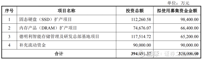 11月25日,公司披露定增预案,拟募资不超32亿元用于固态硬盘(SSD)扩产项目、内存产品(DRAM)扩产项目、德明利智能存储管理及研发总部基地项目以及补充流动资金。