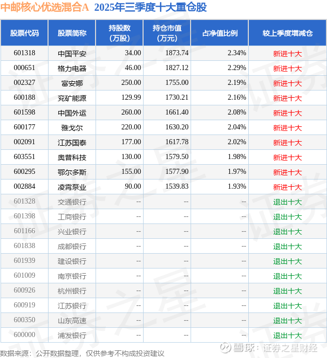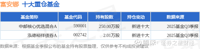 根据2025基金Q3季报公募基金重仓股数据,重仓该股的公募基金共2家,其中持有数量最多的公募基金为中邮基金的中邮核心优选混合A。中邮核心优选混合A目前规模为7.99亿元,最新净值0.9657(12月10日),较上一交易日下跌0.57%,近一年上涨2.47%。该公募基金现任基金经理为陈梁 王高。陈梁在任的基金产品包括:中邮核心主题混合A,管理时间为2015年3月13日至今,期间收益率为16.64%;中邮核心成长混合A,管理时间为2021年11月22日至今,期间收益率为-48.09%;中邮能源革新混合型发起A,管理时间为2025年11月20日至今,期间收益率为-8.92%。王高在任的基金产品包括:中邮中证500指数增强A,管理时间为2020年7月8日至今,期间收益率为16.48%;中邮军民融合灵活配置混合A,管理时间为2023年12月11日至今,期间收益率为34.47%;中邮新锐量化选股混合发起式A,管理时间为2025年11月4日至今,期间收益率为-0.8%。