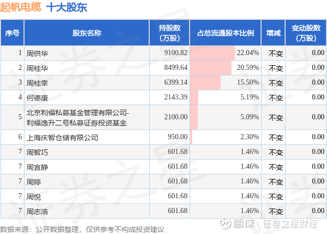 根据起帆电缆2025年三季报公布的十大股东详情如下: