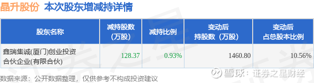 证券之星消息,12月11日晶升股份发布公告《晶升股份:南京晶升装备股份有限公司关于持股5%以上股东权益变动触及1%刻度的提示性公告》,其股东鑫瑞集诚(厦门)创业投资合伙企业(有限合伙)于2025年11月24日至2025年12月10日间合计减持128.37万股,占公司目前总股本的0.9278%,变动期间该股股价上涨12.87%,截止12月10日收盘报36.39元。