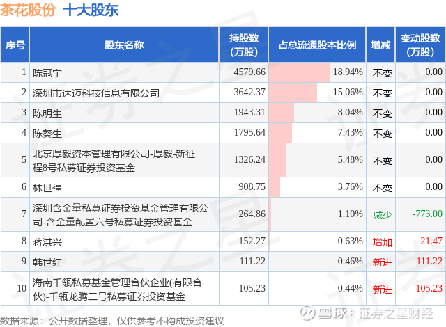 根据茶花股份2025年三季报公布的十大股东详情如下: